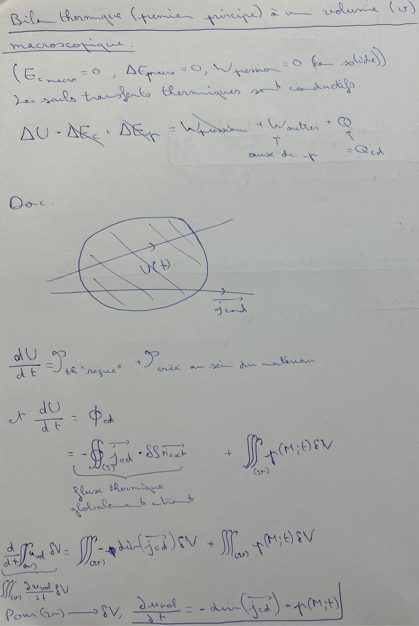 Montrer l’équation locale de conservation de l’énergie thermique dans le cas général