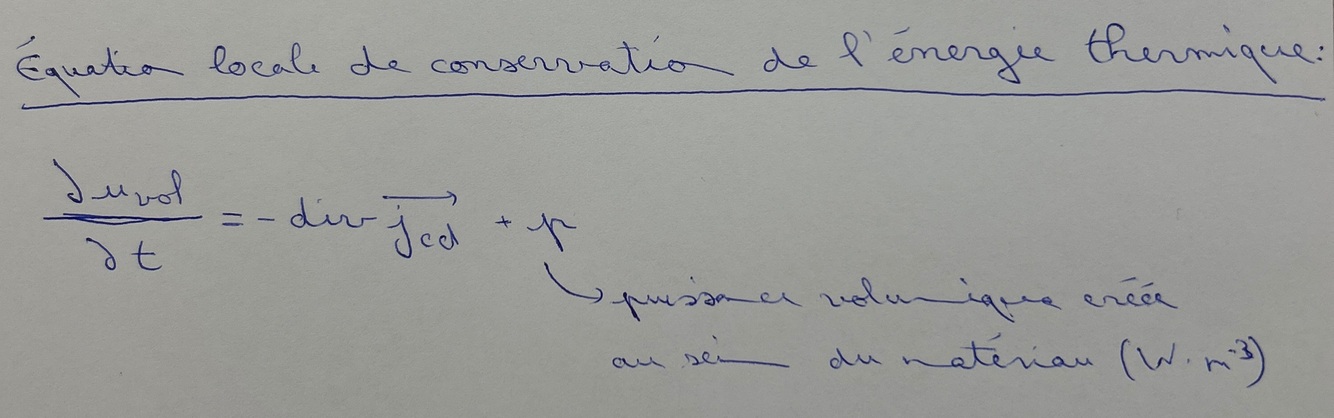 Montrer l’équation locale de conservation de l’énergie thermique dans le cas général