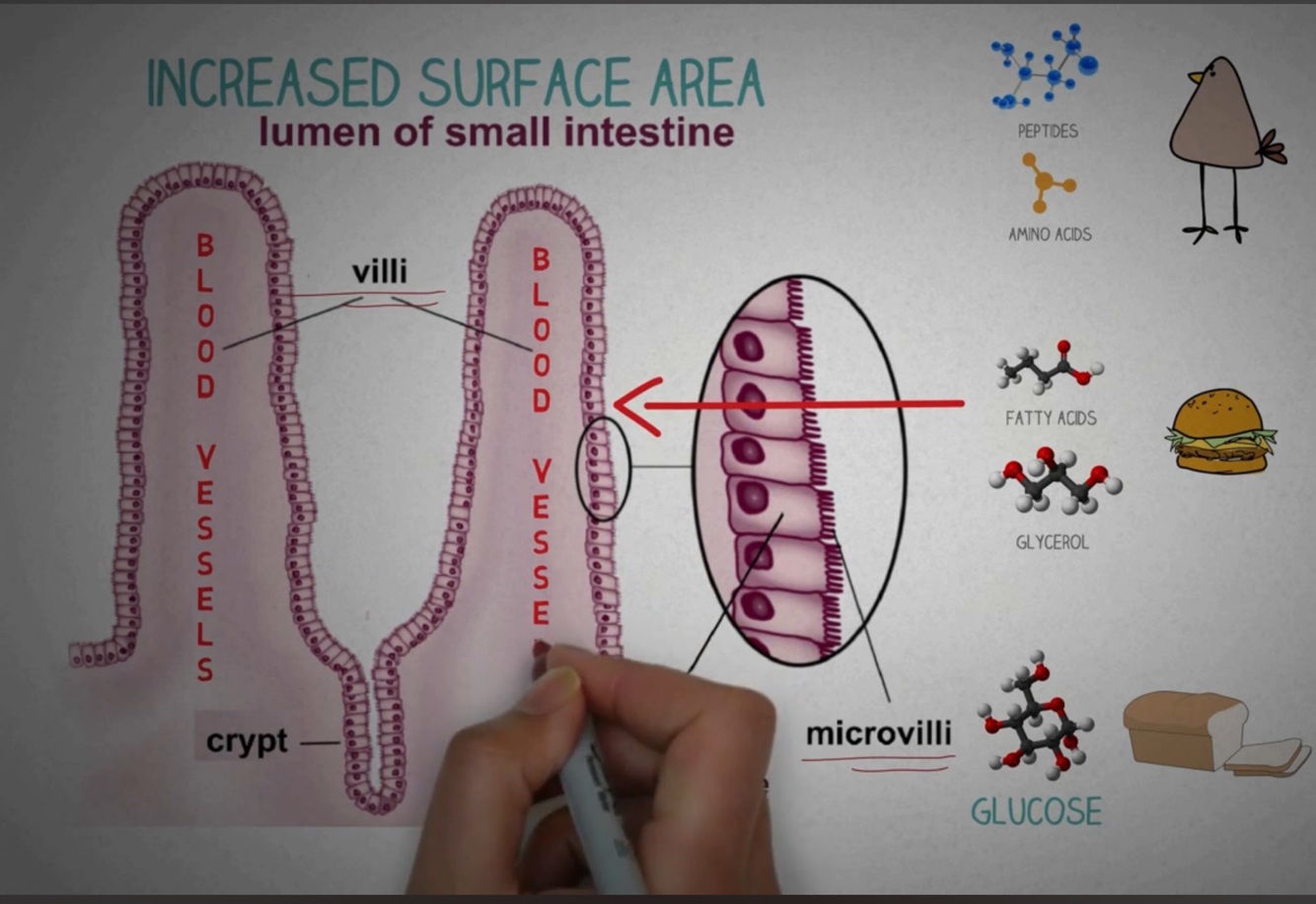 What does having microvilli do to the small intestine