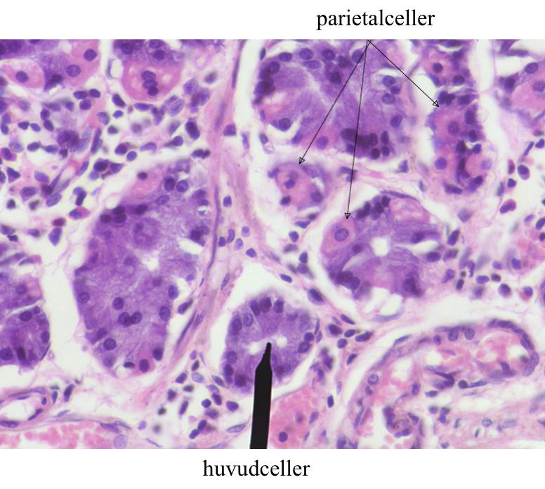 Hur ser parietalceller och huvudceller ut i mikroskop?