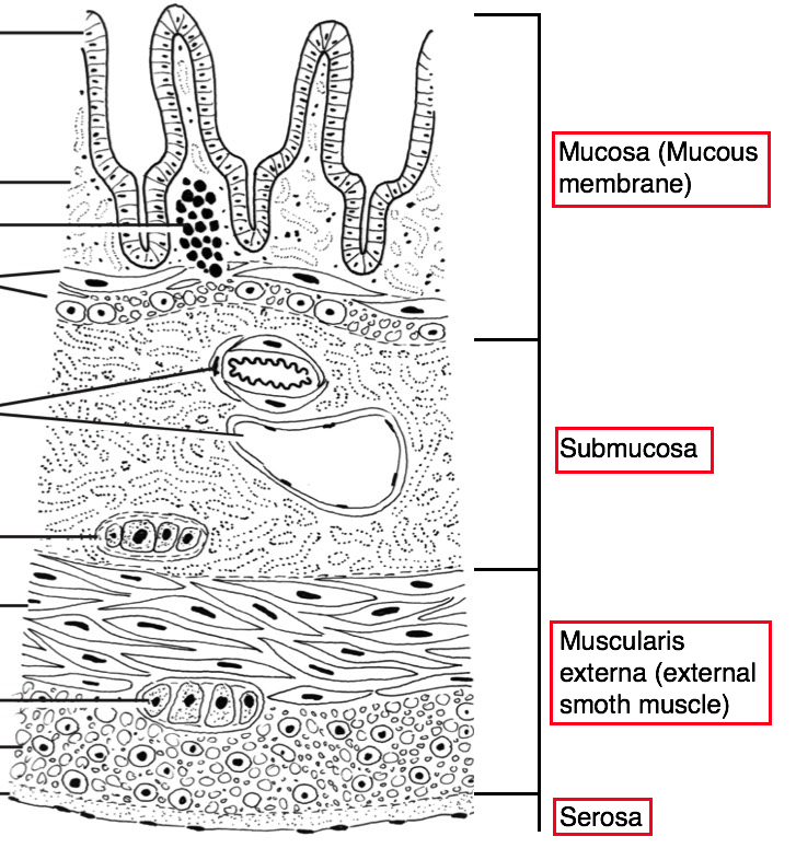 A gut tube (i.e. mouth, stomach, small intestine, large intestine) and two large glands (pancreas and liver)