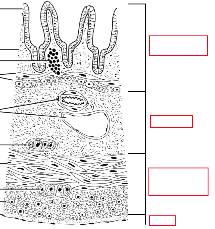 Mucous cells - Secrete mucous which help with moving food down into stomach