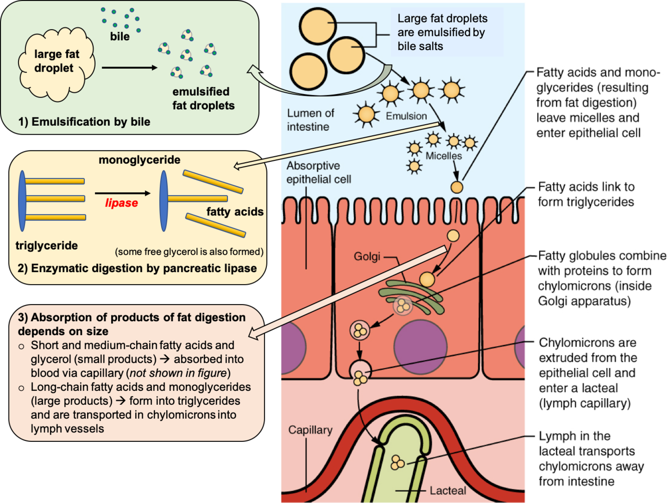 Describe how lipids are absorbed