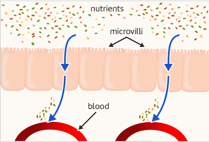 Villi **increase the surface area **of the small intestine, allowing nutrients to be absorbed more quickly.