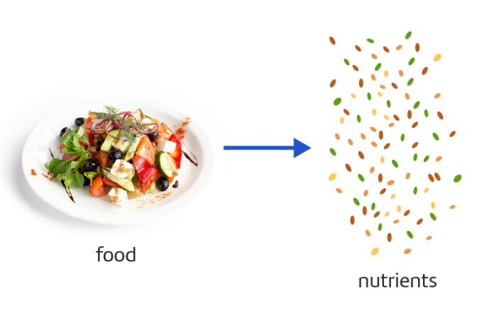The** breakdown of food** into simple nutrients the body can absorb