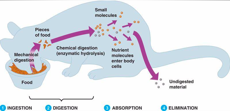 the passage of foo dmolecules from digestive tract into the circulatory/lympthatic system to transport to the body cells