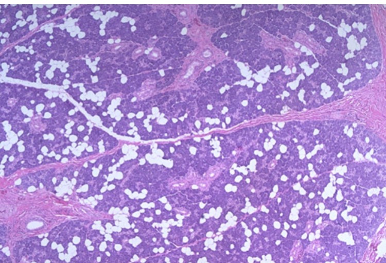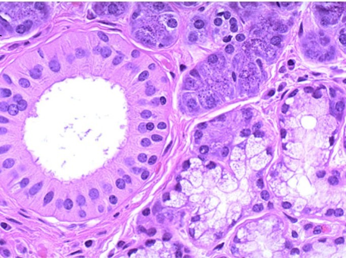 smallest of the three major salivary glands, which also include the parotid and submandibular glands. The sublingual gland lies between the muscles of the oral cavity floor, which include the geniohyoid muscle, hyoglossus muscle medially, and the mylohyoid muscle inferiorly