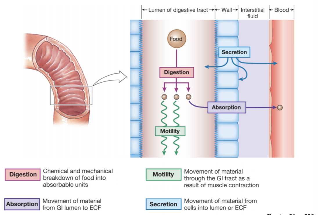 Motiltiy - movement of material through the GI tract as a result of muscle contraction