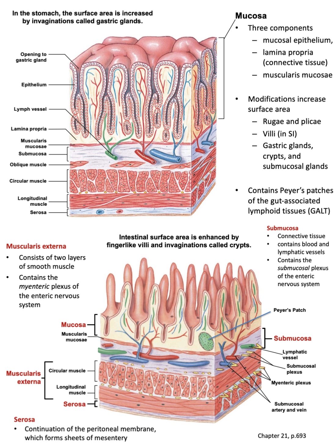 Explain how each of the components of the GIT wall contribtue to the four basic functions of the GIT
