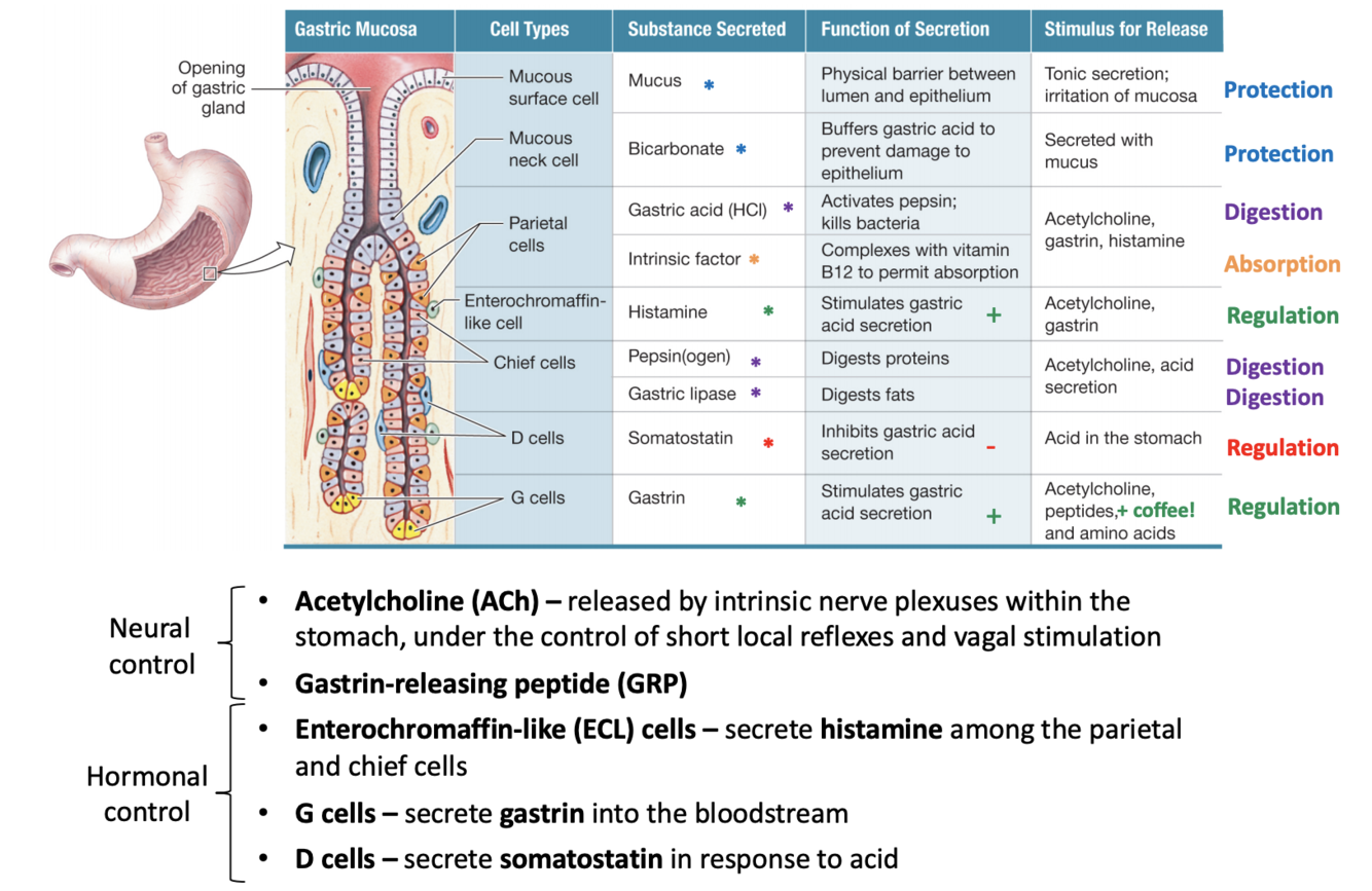 Gastric phase is responsive. Presence of food triggers short reflexes via enteric plexus wherin distension of the gut wall and presence of peptides and amino acids in the gastric lumen activate endocrine cells and enteric neurons
