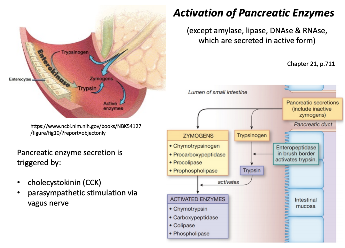 HCl is secreted by parietal cells under stimulatation from 3 chemicals: Ach, gastrin and histamine. All three chemicals need to be present and bind to initate large production of HCl. HCl activates pepsinogen (a zymogen [enzyme precursor]), converting it to pepsin