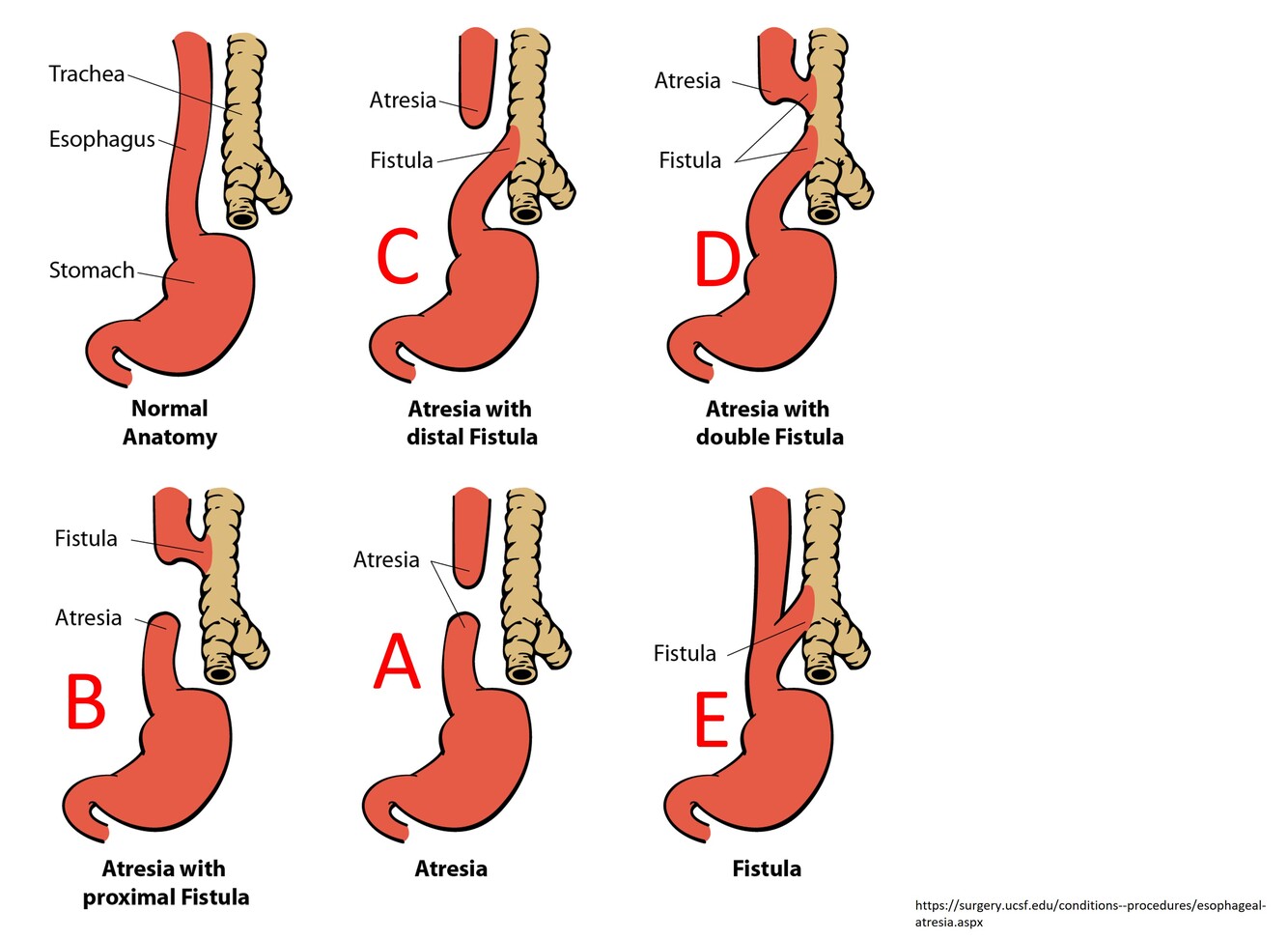 Atresia with proximal fistula (B)
