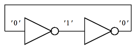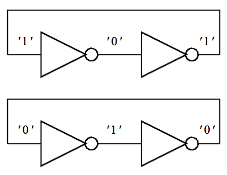 It creates a stable loop which adopts one of two configurations. This saved value is useful in constructing logic circuits.