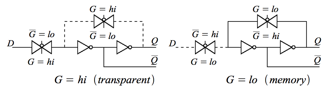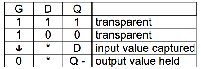 While G is low the D-latch is in memory mode and outputs the captured value, regardless of input D.