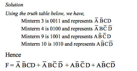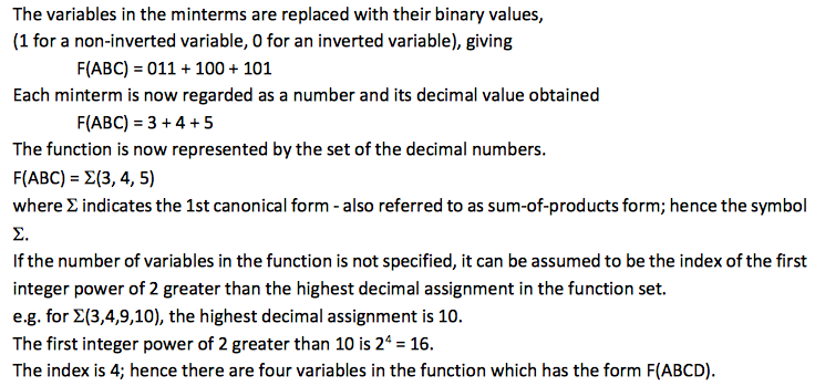 Each minterm is now regarded as a number and the decimal value is obtained.