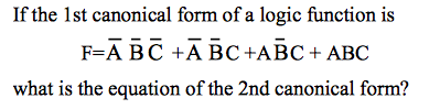 To obtain the 1st canonical form from a truth table, create an AND minterm for every entry with an output of 1.