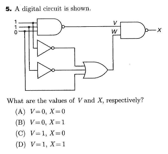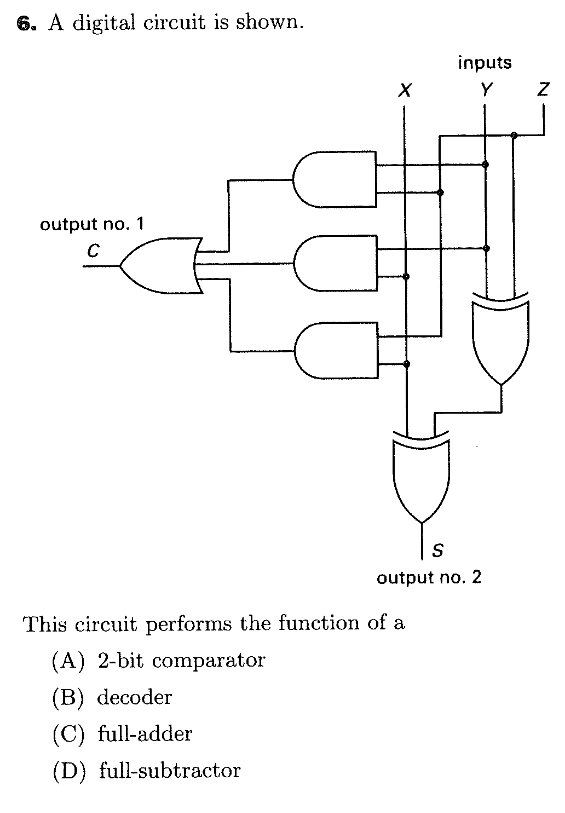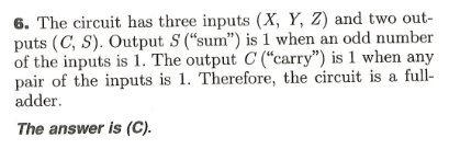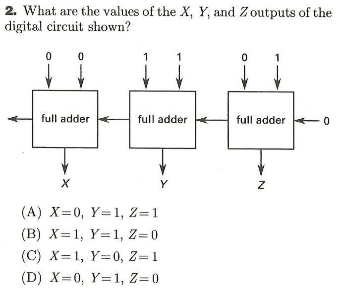 The circuit is a 2-bit binary adder with the carry-in equal to zero. In base two, 010 + 011 + 000 = 101 (in base ten, 2 + 3 + 0 = 5).