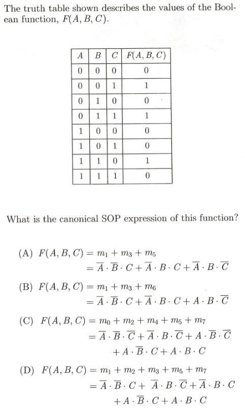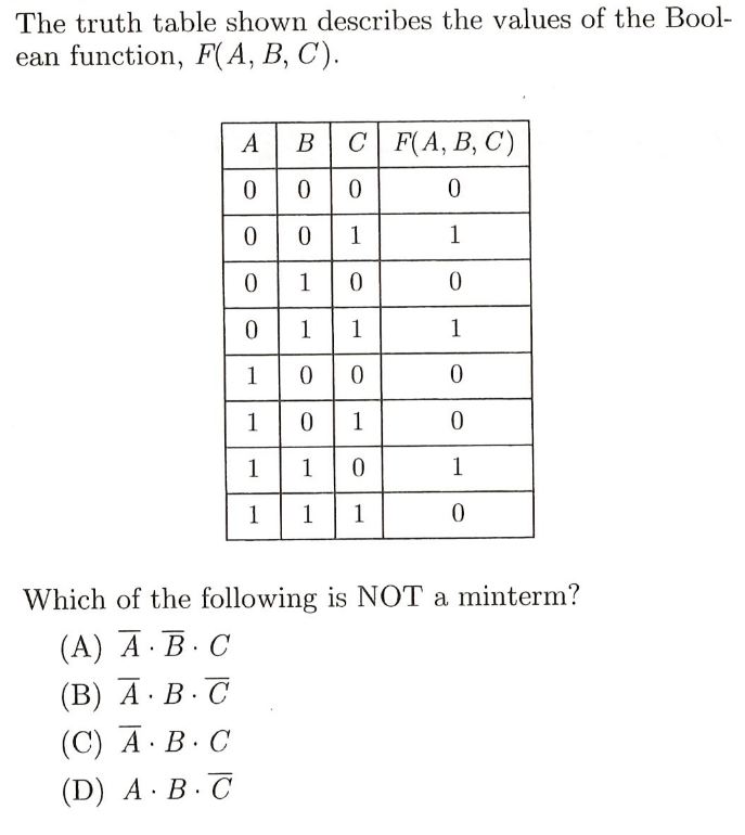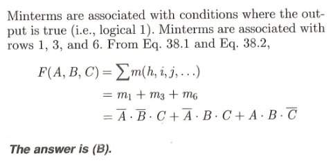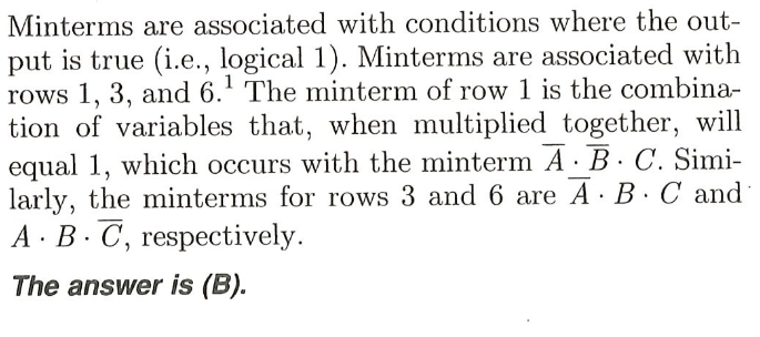 A minterm are all of the “1”s in a truth table. These form a Sum of Products(SOP)