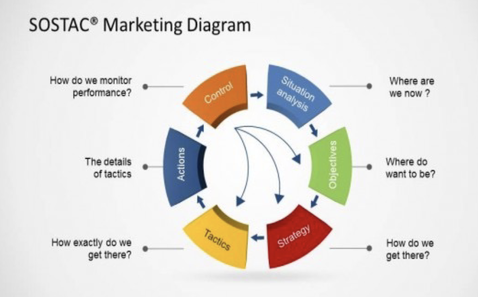 Forklar den digitale strategiske process ved hjælp af SOSTAC Marketing Diagram og hvad den bruges til