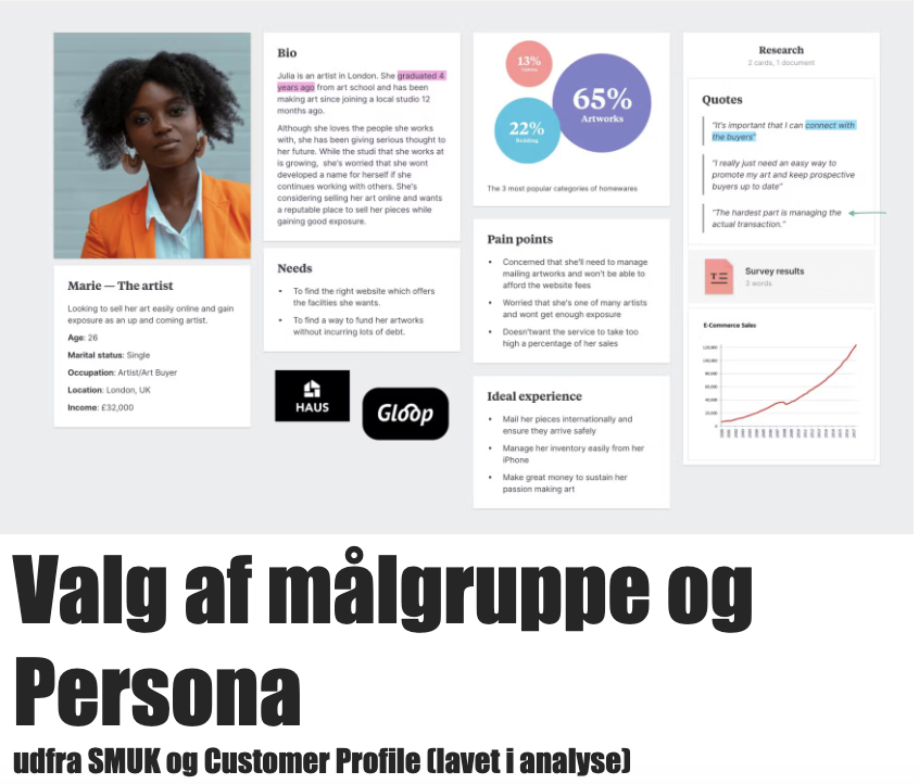 Målgruppe: Valg og beskrivelse af målgruppen samt deres behov og ønsker (anvender SMUK, Kundeprofil/Persona).
