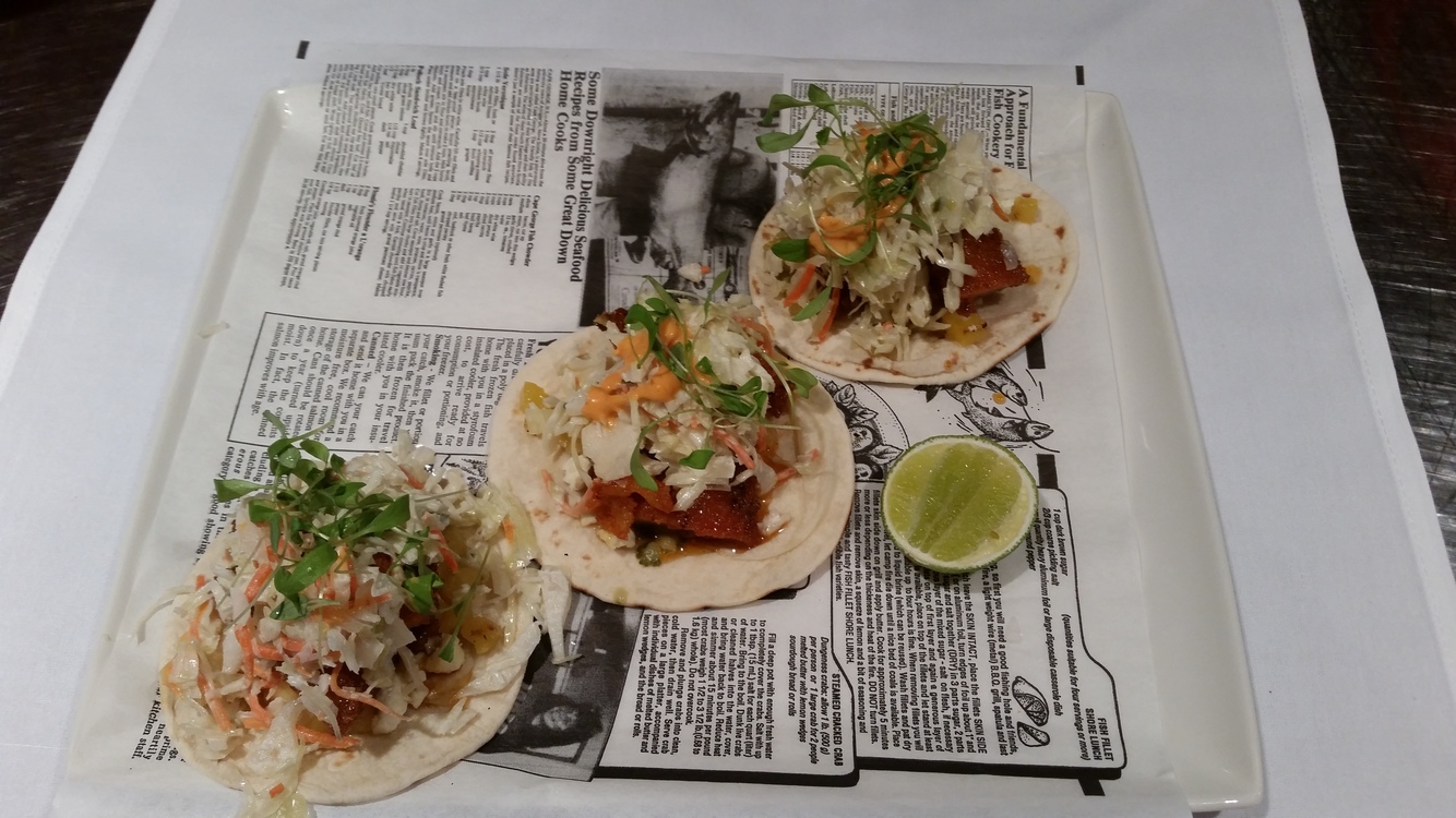 beer-battered chicken, sliced chili, green onions, sesame seeds, chili-lime glaze