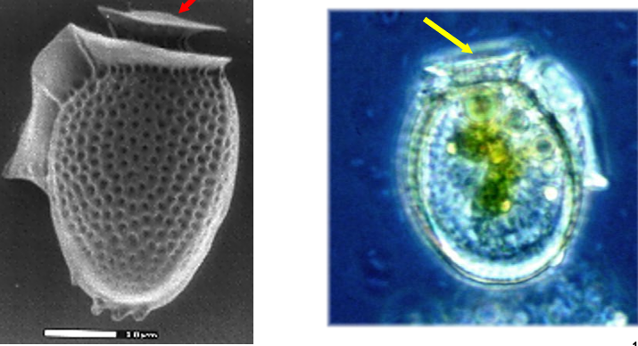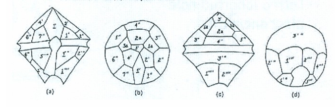 Based on the different position of the flagella dinoflagellates can be divided into two cell types: