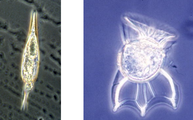 Some Dinoflagellates are characterized by the presence of several horns (e.g. Ceratium). The apical half of the cell is usually characterized by a single horn, while the antapical half can have one, two or even three horns (e.g. Ceratium hirundinella).