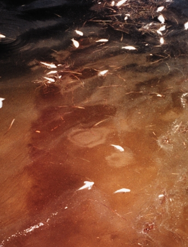 can result in a visible colour of the water to brown, red or green