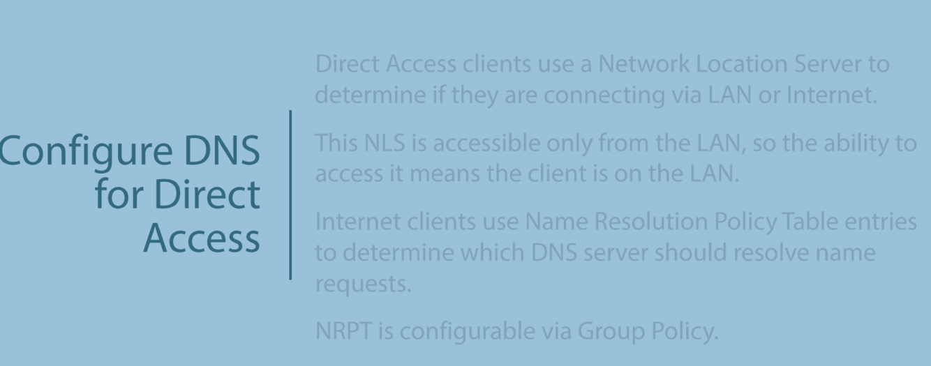 Direct access Internal DNS Requirements