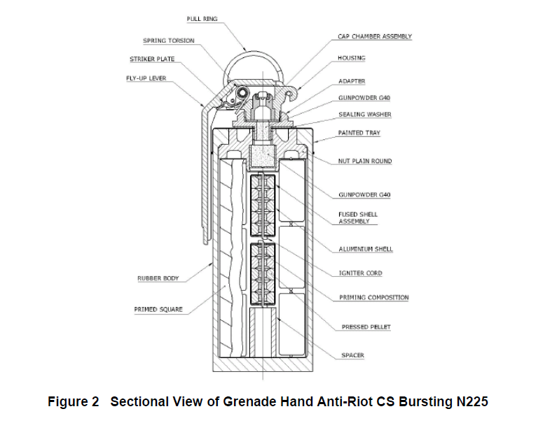 GREN HAND A/RIOT CS BURSTING N225 is a rubber bursting grenade developed to ensure:
