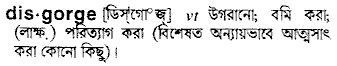 disgorge = উগরে দেওয়া , অন্যায়ভাবে পাওয়া জিনিস ফিরিয়ে দেওয়া