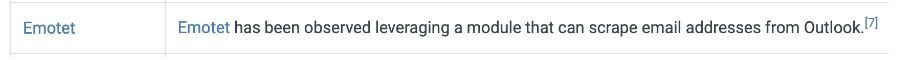 Email Accounts – Attackers may attempt to get a listing of email addresses and accounts using techniques such as dumping Exchange address lists. It’s worth mentioning that this is what Emotet does when it infects a system, using this technique to scrape email addresses so it can send malicious emails from the compromised email account to any contacts or recent recipients.