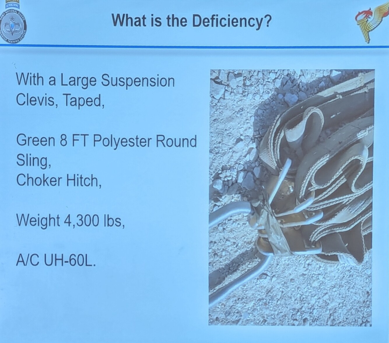 Sling leg misrouted