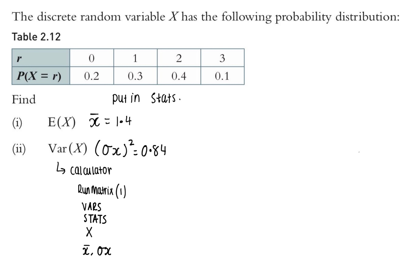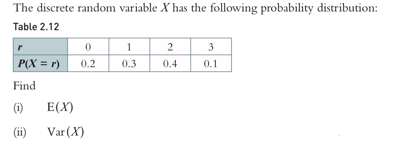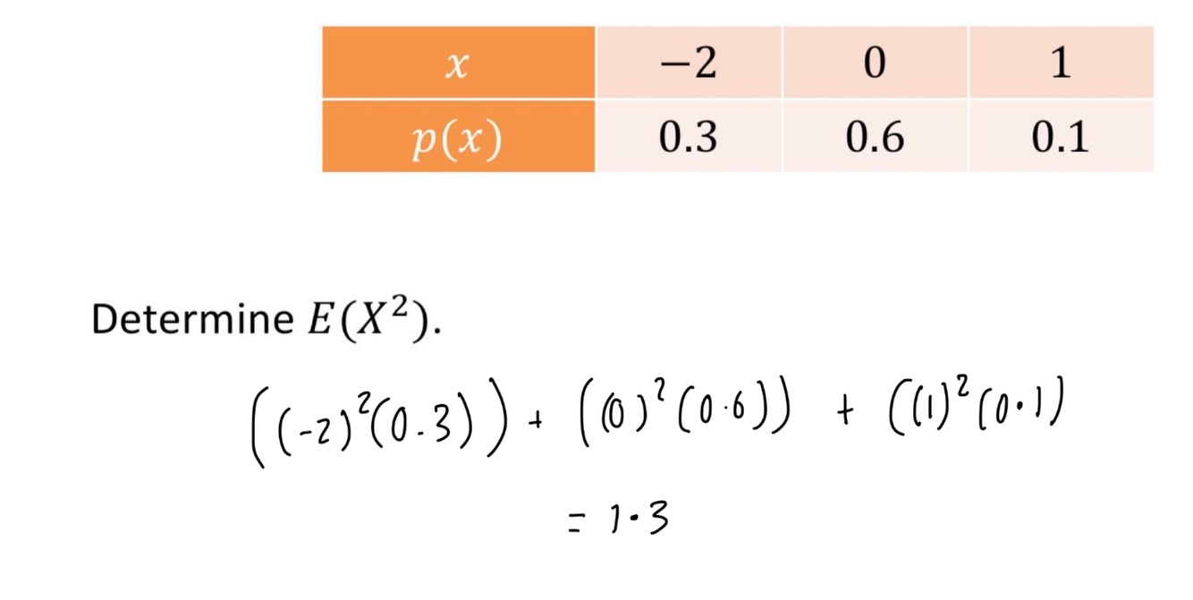 2. find E(X^2) by using Σ (x^2)(P=x)