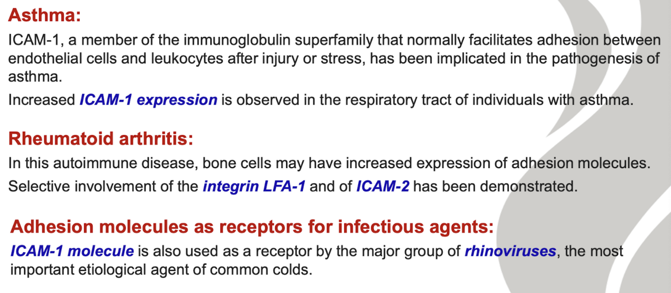 What are other diseases associated with cellular adhesion molecules (CAMs)?