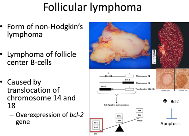 Describe how apoptosis is affected in follicular lymphoma. (pathway)