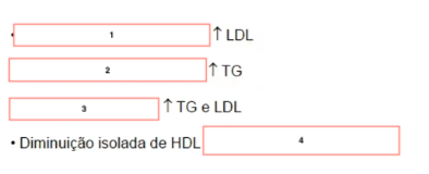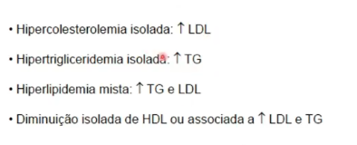 Diminuição de HDL isolada ou associada a ↑ LDL e TG