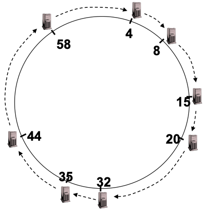 Ein DHT verteilt (Key, Value) Paare über mehrere Computer (buckets) die überall auf der Welt verteilt sein können. Wenn ein User einer eine Key eingibt, benutzt das System eine Hashfunktion um den Value zum Key zu finden, welcher auf einem der Computer gespeichert ist. Der Hash identifiziert dabei den Computer (bucket). Dabei müss nicht jeder Comupter jeden anderen kennen aber alle müssen irgendwie erreichbar sein.