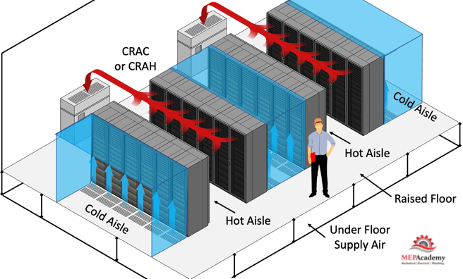 - Diseño: Utilizar una disposición de pasillo caliente/pasillo frío (hot aisle/cold aisle) para la distribución del aire.