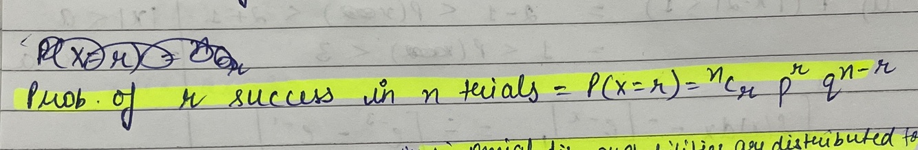 In binomial distribution, probabilities are distributed for different outcomes in this manner (p+q)ⁿ