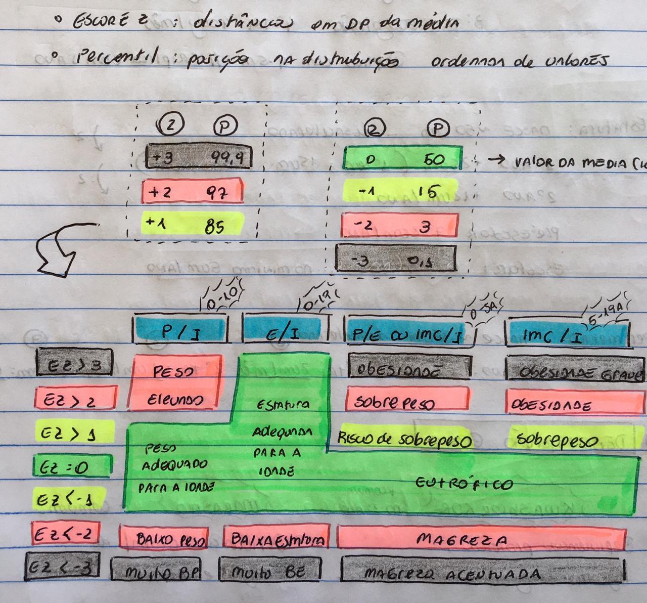 Como fazer a classificação nutricional de uma criança de acordo com o escore Z e percentil, quanto a P/I, E/I, P/E ou IMC/I?