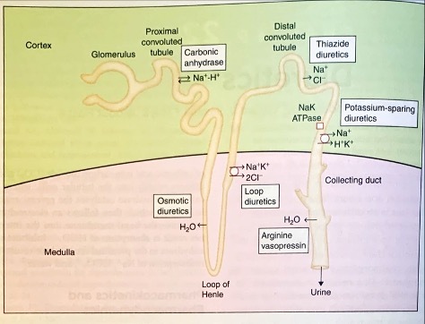 These drugs block sodium & chloride reabsorption at different sites in the nephron