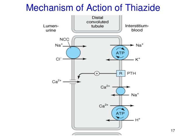 Which transporters do thiazide diuretics affect and where? Effect of this?