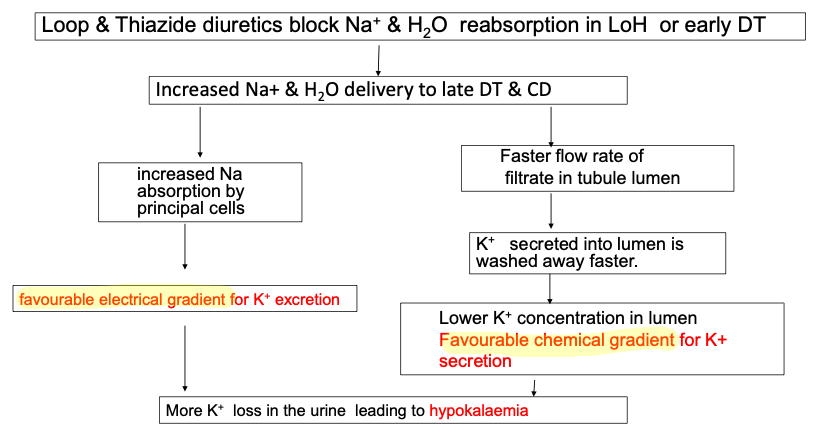 How do loop diuretics and thiazide cause hypokalaemia?