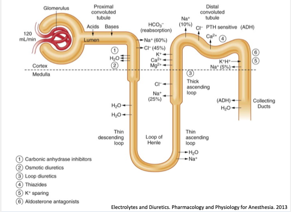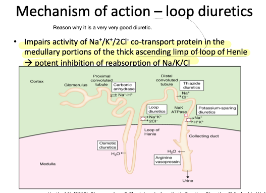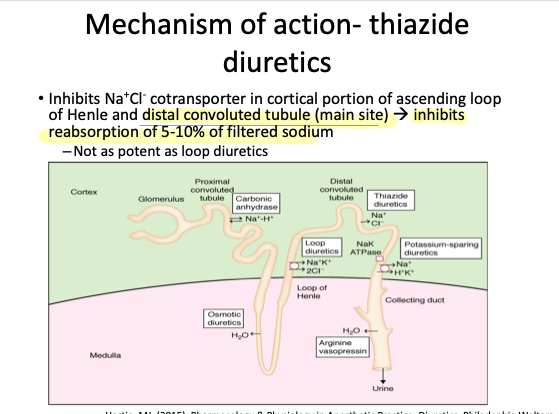 –> works on the covulated tubules. NOT as effective as loops in volume management
