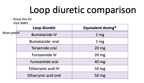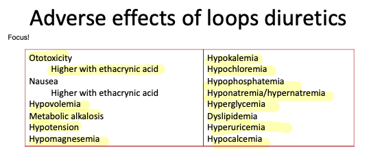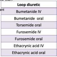• Ethacrynic acid • Furosemide • Bumetanide • Torsemide