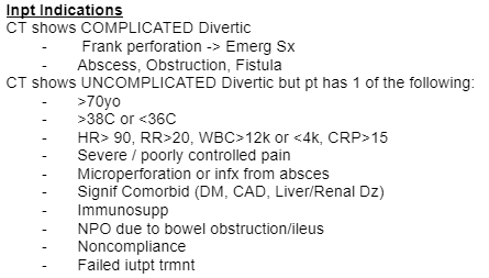 *Pts with Hx Divertic + mild LLQ pain w/o fever do NOT need labs/imaging”