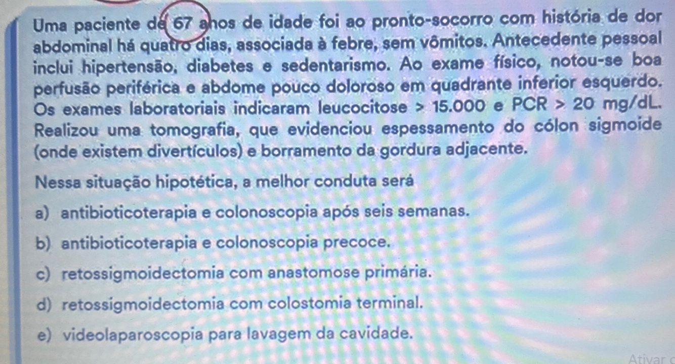 1.A- inflamação/fleimao pericolico confinado porém sem ABSCESSO!