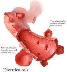 diverticuloza colonica (diverticulii colonici) reprezinta “pungi” de dimensiuni variabile de la cativa milimetri la cativa centimetri, formate prin hernierea mucoasei colonice in afara lumenului colonic.