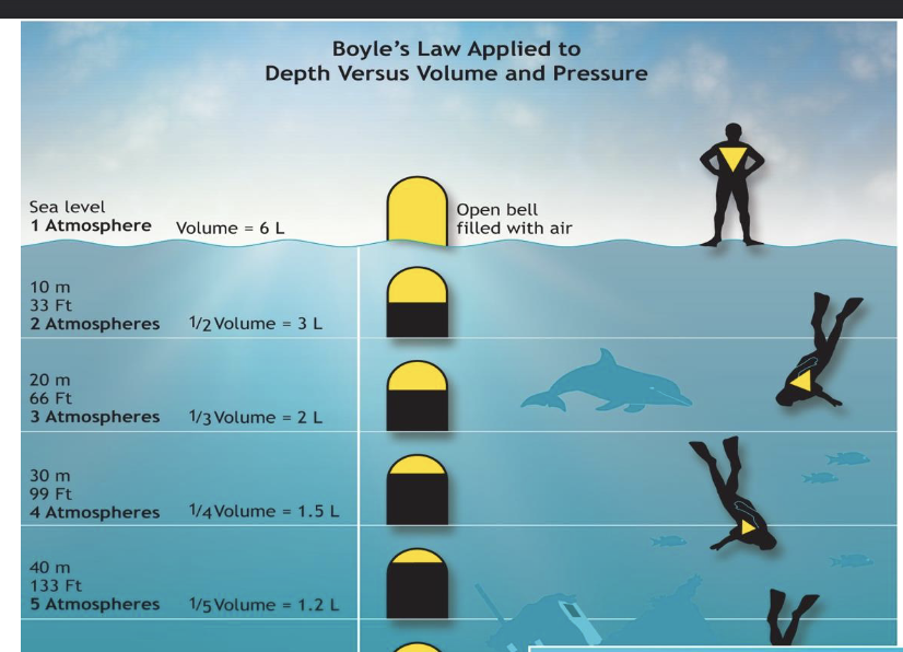 every 10 metres down the pressure doubles, the metres, add 1 and put on denomenator